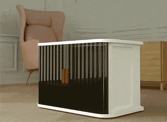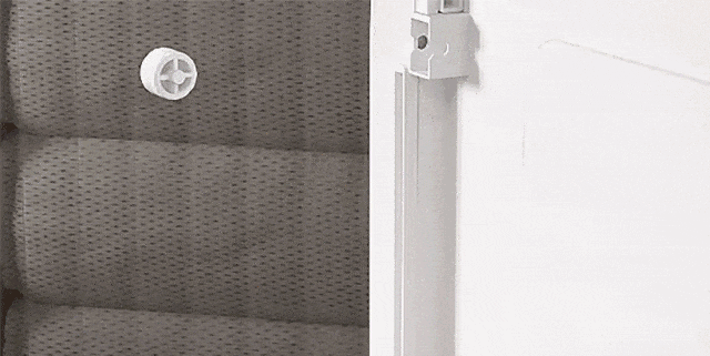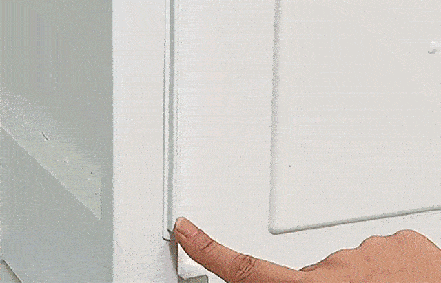 通常のヒンジドアは支点を中心に外へスイングして開閉するが、本製品のスライドドアは両サイドに平行に開閉できます。