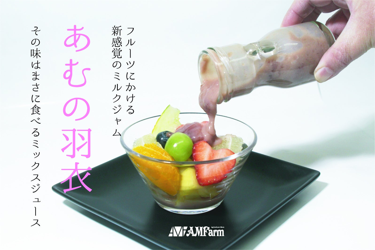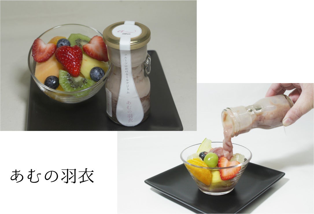 今回、商品をブラッシュアップするセミナーぶち塾を通してそのニーズに応える時が来ました。地元の大学生たちと一緒に考え商品化できたのがこちらのフルーツにかける新感覚のミルクジャム「あむの羽衣」です。