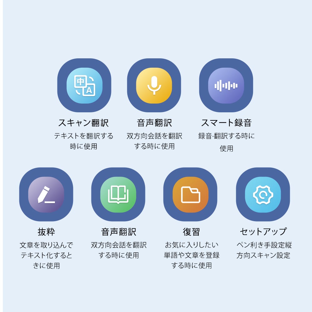 なお、 外国語講座 、 会議 、 演説 、 外国語での授業 等の時、話者の話した言葉をリアルタイムに録音・翻訳し、原文も翻訳内容も画面に表示する可能です!