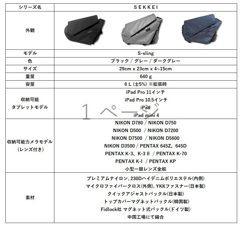 スリングバッグ SEKKEI S-sling に新色 ダークグレーが登場!