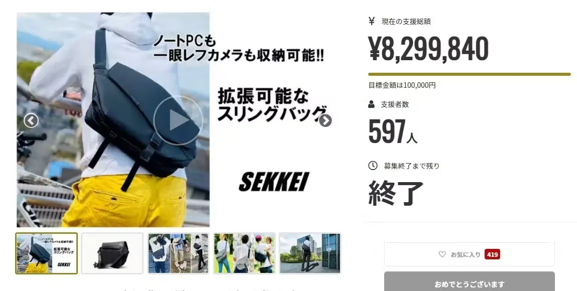 そして、新作 SEKKEI S-sling は 前作 M-sling の支援者層の圧倒的多数を占めた30~50代の男性を明確にターゲットとする事になりました。