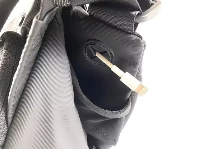 モバイルバッテリーを収納すれば、専用のケーブル穴を通して、通話をしながら充電することも可能です。