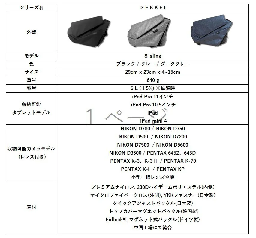 支援者の皆様の声を反映し開発チームで試行錯誤を重ね、前作「SEKKEI M-sling」から更にstylishに、更にcompactになって「SEKKEI S-sling」 満を持してリリースです!