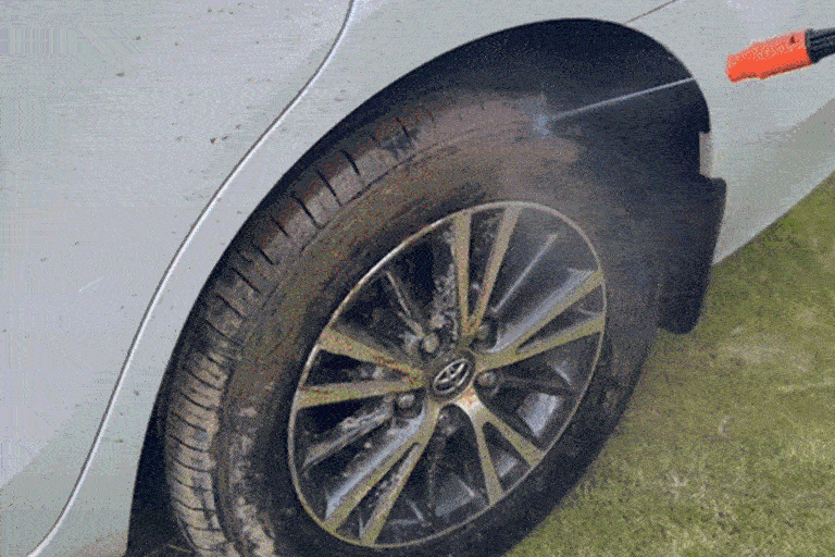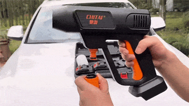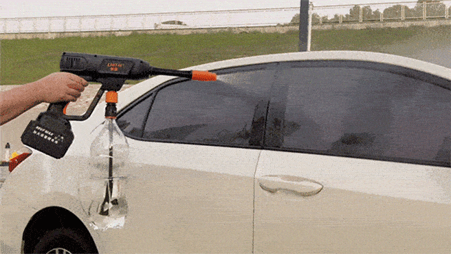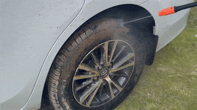 従来の洗車方法はタオルで車全体に洗浄剤を付与するもので非常に手間が掛かります。 充電式高圧洗浄機「CHITAI」の洗浄剤ノズルを使えば、適量の洗浄剤を入れるだけで泡がムラなく噴射でき、面倒な作業も一瞬で完了。