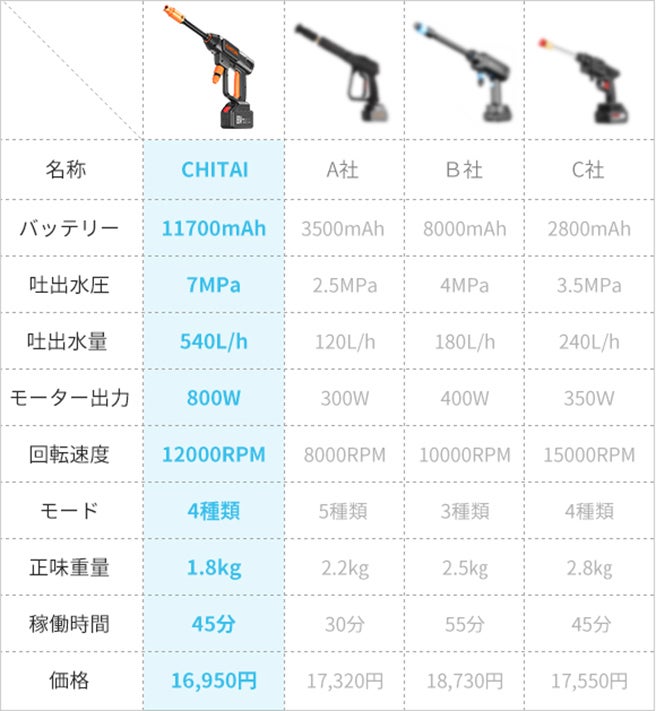 充電式高圧洗浄機「CHITAI」ポイント