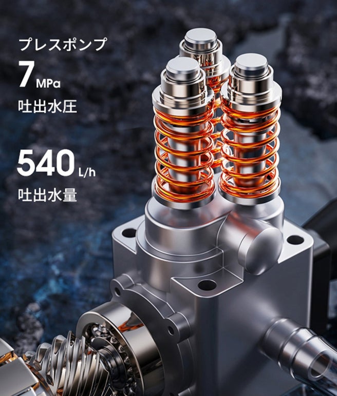 7MPaの高水圧と540L/hの大水量を出すことができます。
