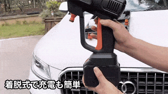 洗車はもちろん、お花の水やりやアウトドアのお掃除も可能。 着脱式大容量バッテリーを内蔵しており、自動吸水方式なので、近くに電源や水道がなくても大丈夫!