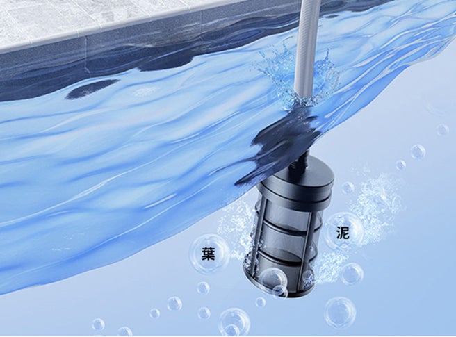 雨水やプールの水も利用できるので、環境にやさしいだけでなく、お金も節約できます。 給水ホースの先には水の細かいゴミを取り除くフィルターが付いているので、水が詰まる心配がなく安心して使えます。