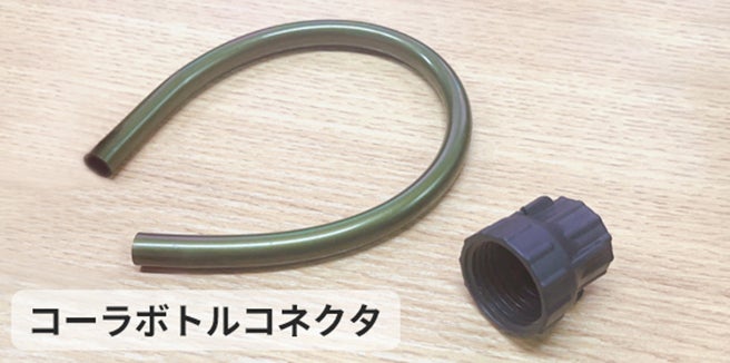 コーラボトルコネクタが付属。綺麗にするのに水の入ったペットボトル1本だけでOKです。屋外にいる場合は、予め飲料ボトルに水を入れておくといつでも使えますので便利です。こちらもプレゼント致します。