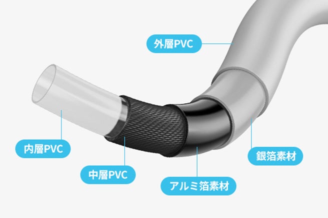 5mホースは耐熱性と老化防止の特性を備え、5層の保護材を採用。冷気と熱気の温度差を効果的に遮断し、破裂を防ぐことができます。