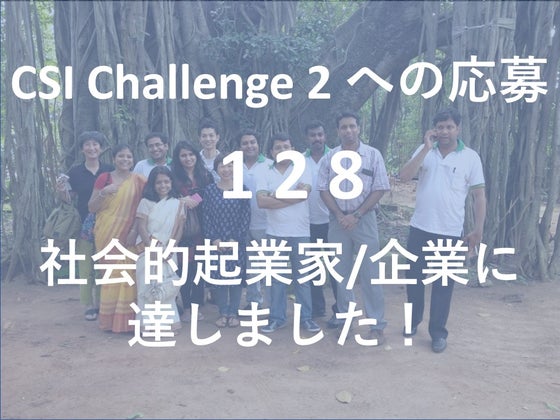 こんにちは とうとう、CSI Challenge2への社会起業家のみなさんからの応募を31日深夜締め切りました。最終日には、駆け込み応募もあり、128件に達しました。これは、前回、2016年開催CSI Challenge1の2倍以上となっています。取り纏めている本人の感想として、インドからのエントリーが多いと感じます。これから選考が始まります。