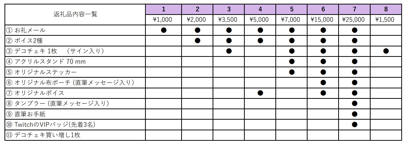 目的は初期費用を用意することですが、今回クラウドファンディングをさせていただいたくことで、同時にゆちゃまるの推し活を充実できるような返礼品を皆様にお渡しする機会を設けたいと思います。