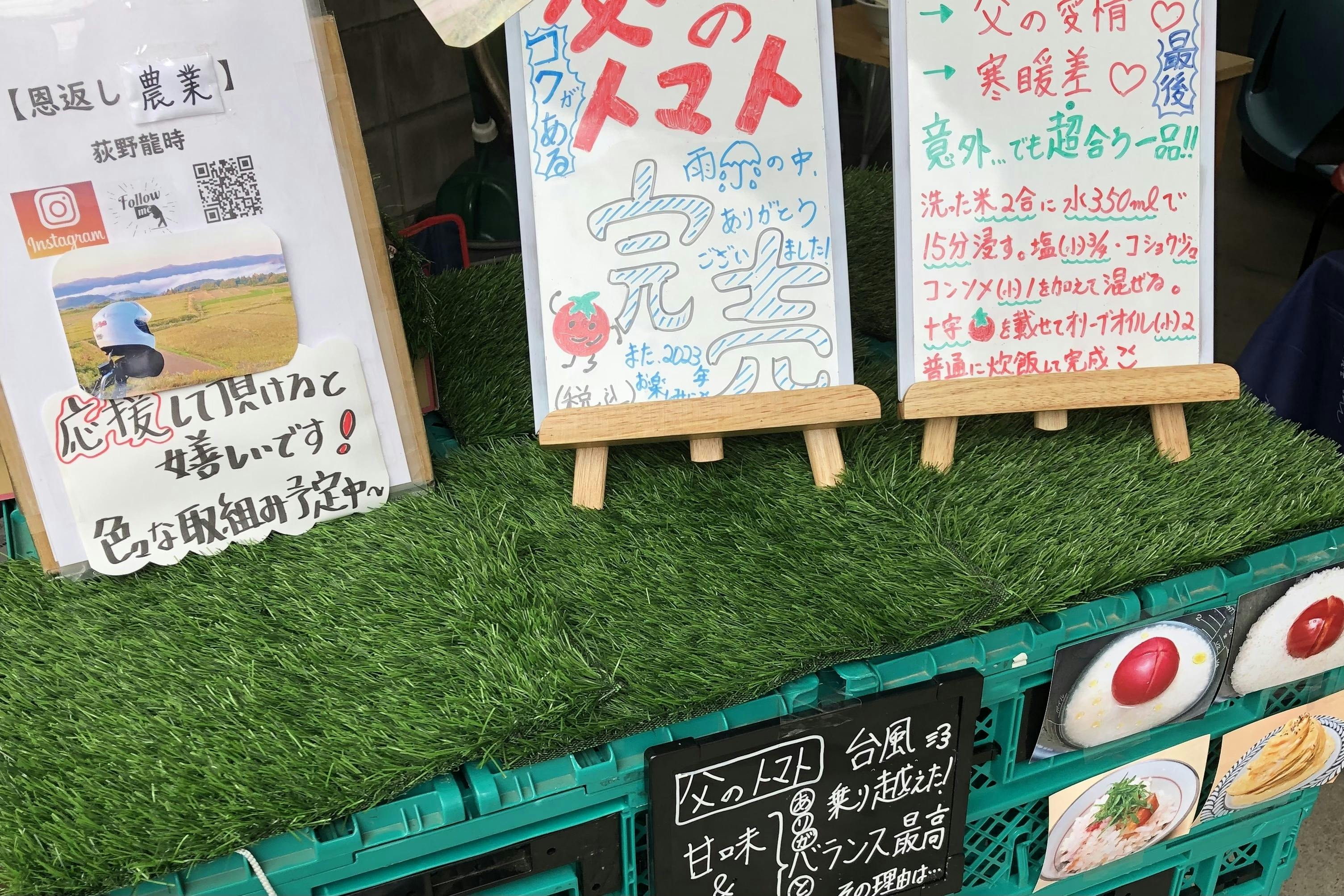 私は父が作るトマトを昨年6月頃から、埼玉県さいたま市のマルシェで販売しています(※1)。約半年のマルシェは、色々な方とのご縁とご協力のもと毎回完売することができました。