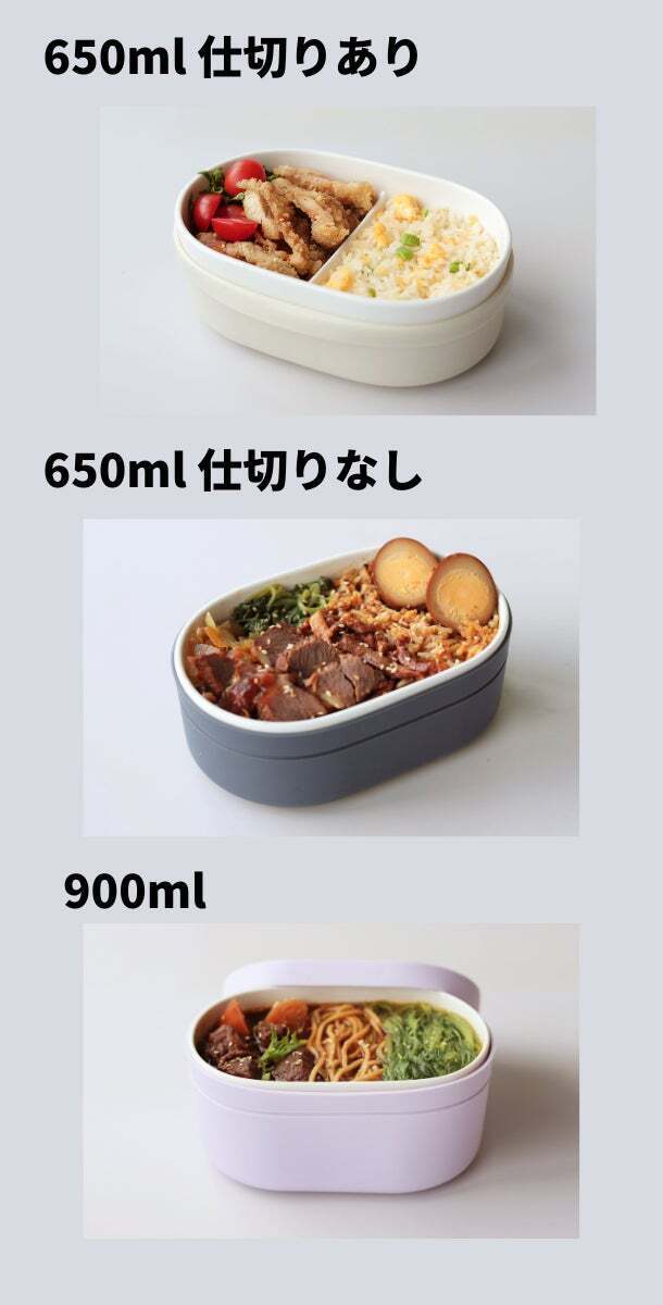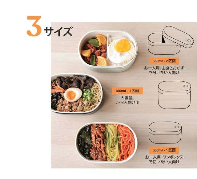 Ohayo Bentoのサイズは3種類あり、ニーズに合わせてお好みで容量をお選びいただけます。