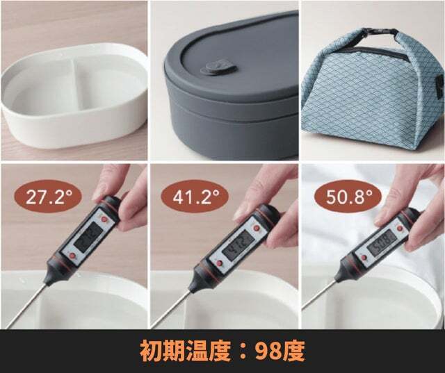 ※こちらは沸騰したお湯を注いでテストした結果です。液体、固形などで保温状態は変わる可能性はあります。