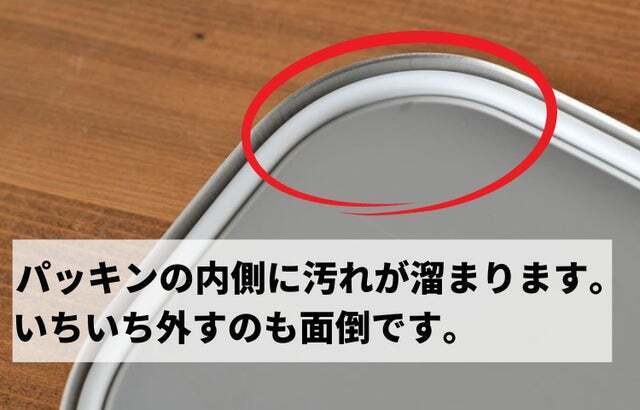 お弁当箱に対するよく聞かれる悩みは、内蓋に沿ったプラスチック/シリコンリングがいかに取り出しにくいか、そしてその溝がいかに汚れを閉じ込めやすいかということです。時間経過により、この隙間に雑菌やカビが繁殖してしまうケースもあります。