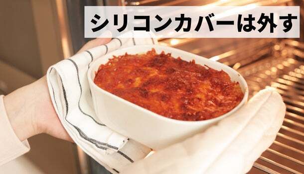 A.オーブンでご使用になる場合は、シリコンカバーを外してご使用ください。シリコンカバーはご使用にならないでください。