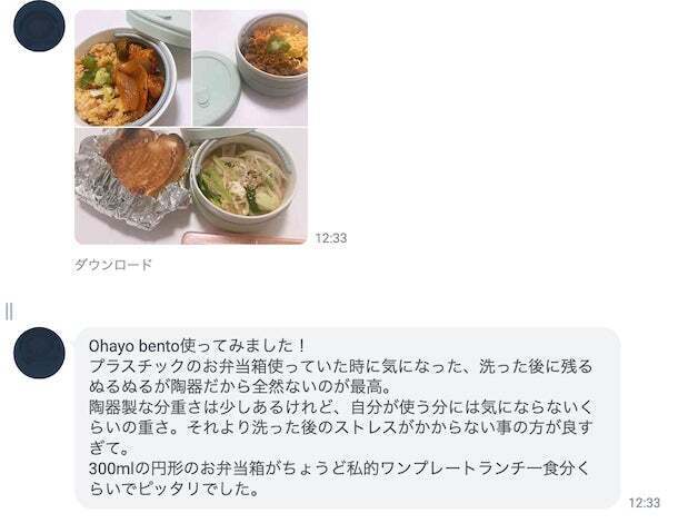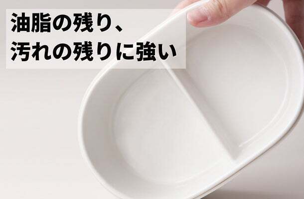同じく磁器製のOhayo Bentoが汚れに強く、ニオイも残りにくい事はイメージできると思います。一般的なプラスチックのお弁当箱と比べて、優れているポイントです。