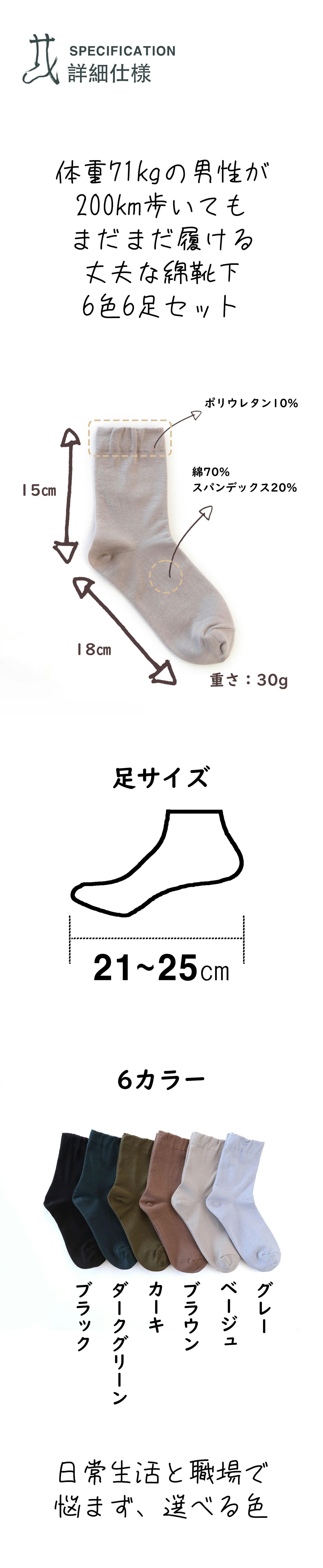 ー毛玉がでにくい、伸びにくい綿靴下6足セット!