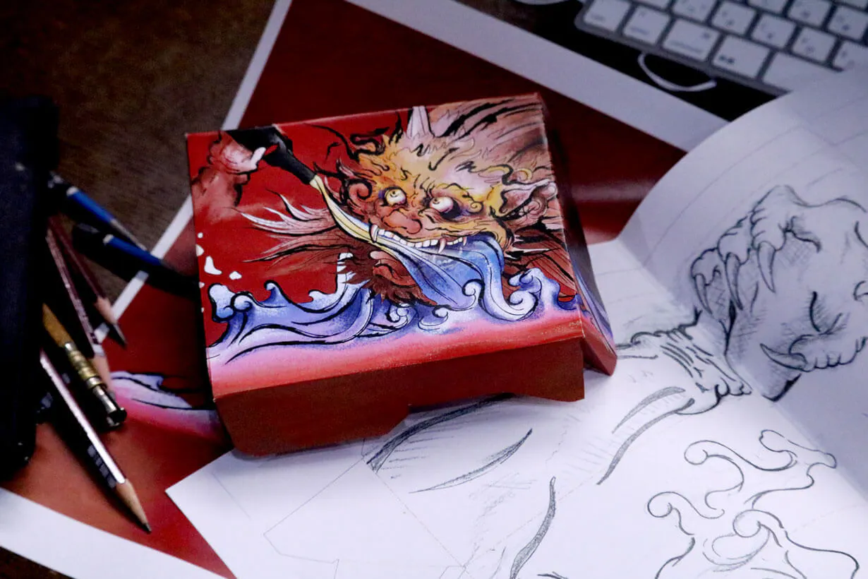 今回のプロジェクトは、妖怪好きデザイナーKOKI(谷口幸輝)が企画しました。彼の商品への想いと並ならぬ妖怪好きにチーム一同が賛同しました。「IY-O2」は、地方伝統が掛け合わされた数少ない商品です。ぜひ、多くの方にこの日本酒の美味しさに触れていただきたいと思い、デザインの力で応援しようと考えました。