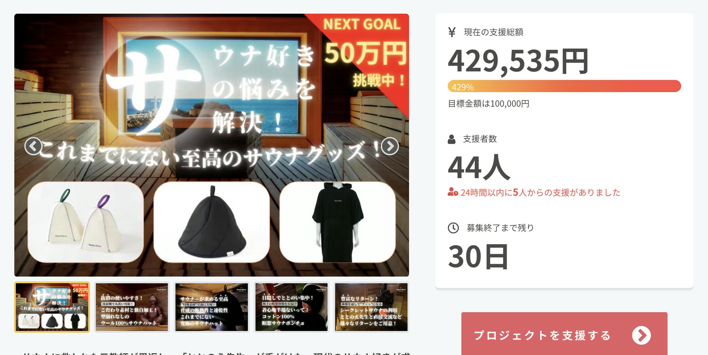 現在、支援者「44名」、支援金額「429,535円」となっております!