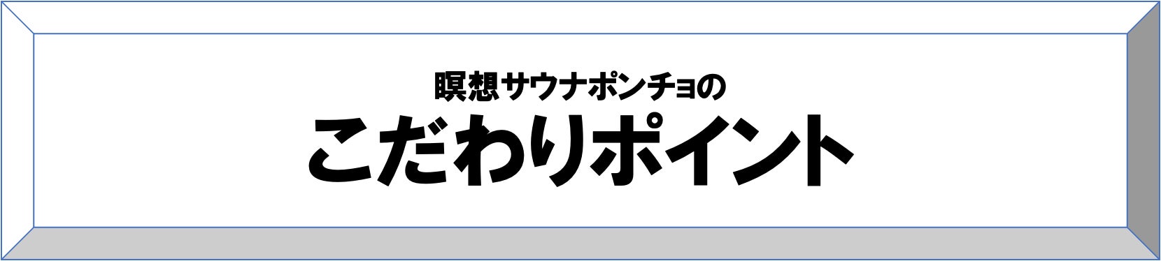 コットン100%の生地を使用しパイル同士の間隔を調整することで熱が逃げるのを防ぎ、抜群の保温性と着心地を兼ね備えたポンチョを制作しました!そして、極め付けは目隠しフード。ととのう最中の視界が邪魔されない"ちょうど良いフードの大きさ"を実現。これにより、どんな状況でも外気浴に集中することができます。 そんな優れもののポイントをご紹介!
