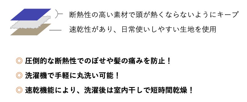 羽毛布団よりも優れるという断熱性と、速乾性を併せ持つシンサレートを中綿に使用し、表面と裏地には速乾性のある生地を使用。素材すべてが速乾性に優れており、洗濯機でも気軽に洗え、室内干しでも最短約4時間で乾くという日常使いにピッタリなサウナハットになっています! そしてこの美しい曲線でどんな人にもフィットするサイズ感を実現しました!