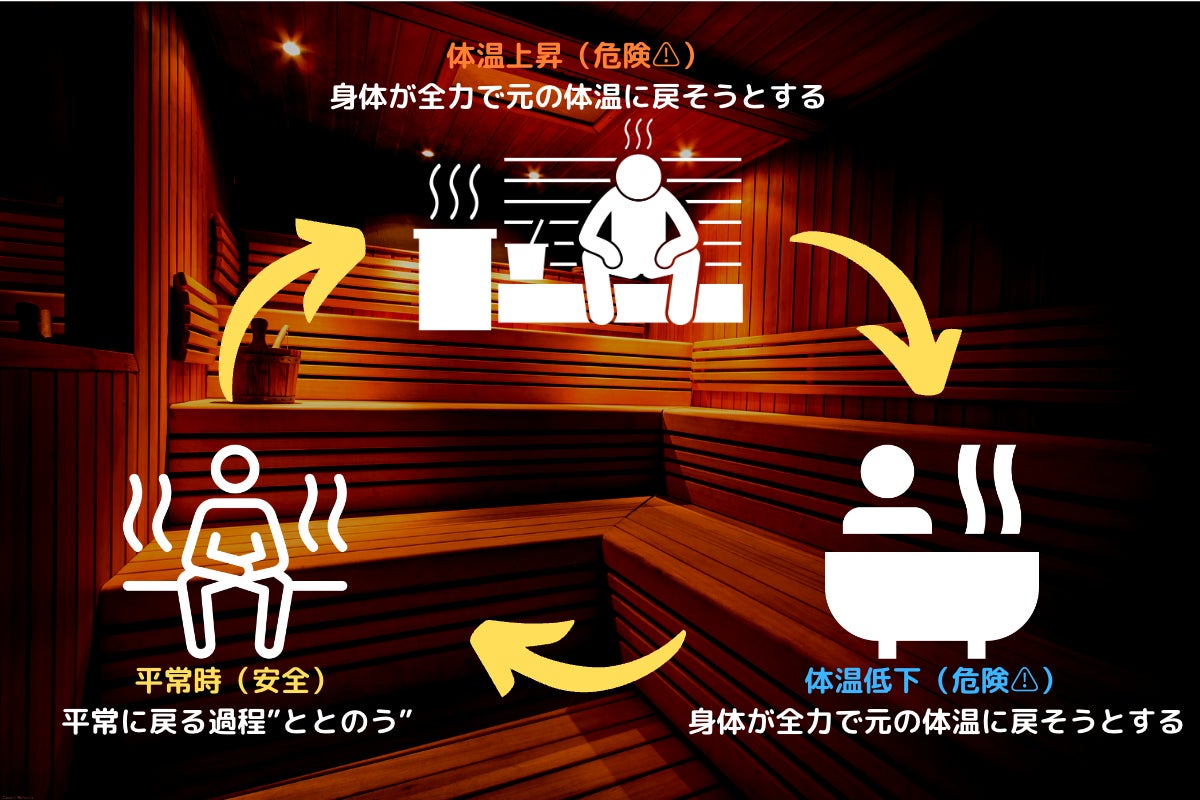 サウナに入って体温が上がると汗をかいて体温を下げようとします。次に水風呂で体温が急激に下がると、この環境に適応しようと身体が必死に働きます。そして外気浴では体温を平常値に戻るため、神経や細胞がリラックスします。そう、"ととのう"と言われる感覚は、まさにこの「恒常性」がもたらす快感なのです。