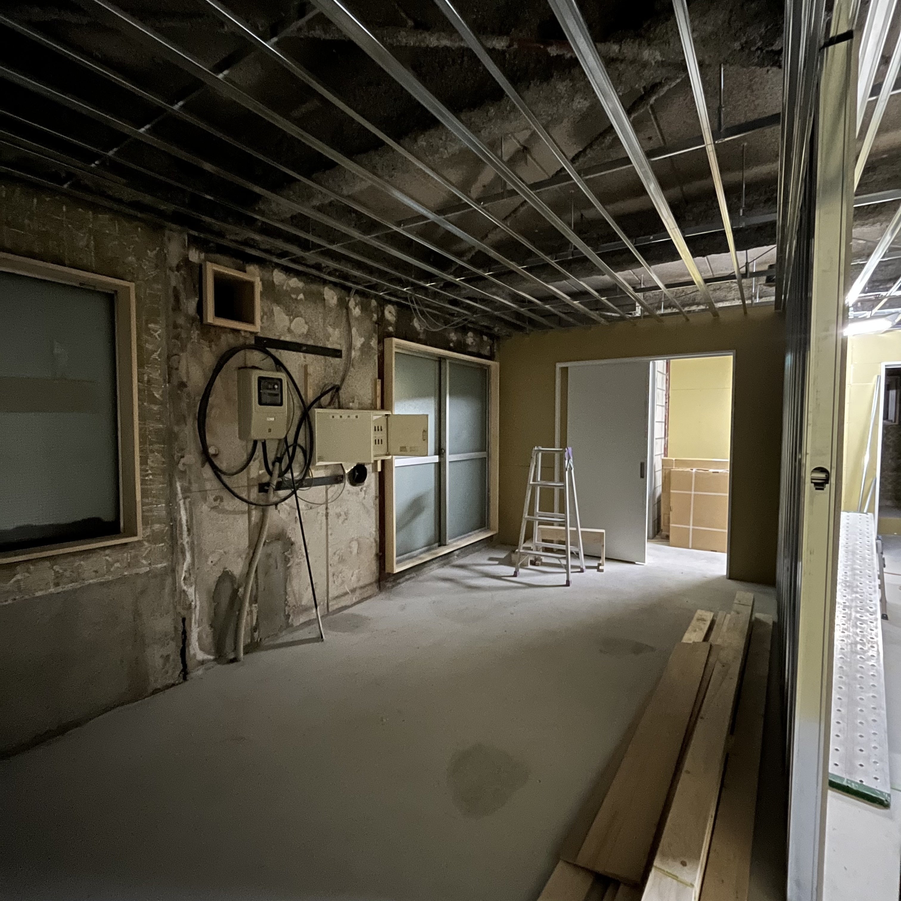 工事中のためモノが多く(業者さん、いつもありがとうございます!)、また今回も電気がなく暗い写真で申し訳ありません。