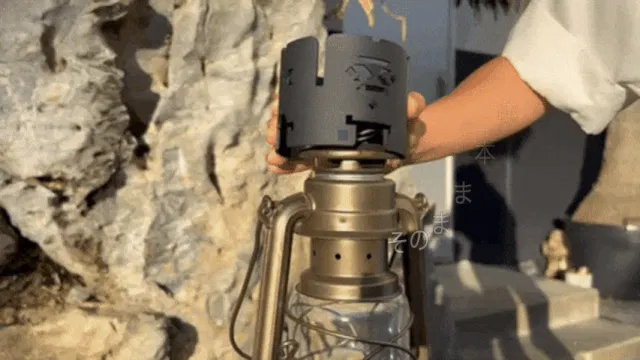 DIETZ 78やCAPTAIN STAG、カメヤマキャンドルオイルランタンはベンチレーターに二重円型のプレートを置いてから、細長い凹みを下にして設置します。