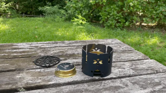 ランタンの灯りが不要な日中はアルストの五徳兼風防という使い方が推しです!