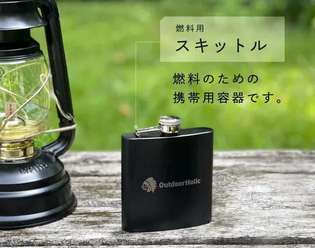 燃料用スキットルは、アルコールストーブや、オイルランタンの予備燃料を携帯するのに便利です。