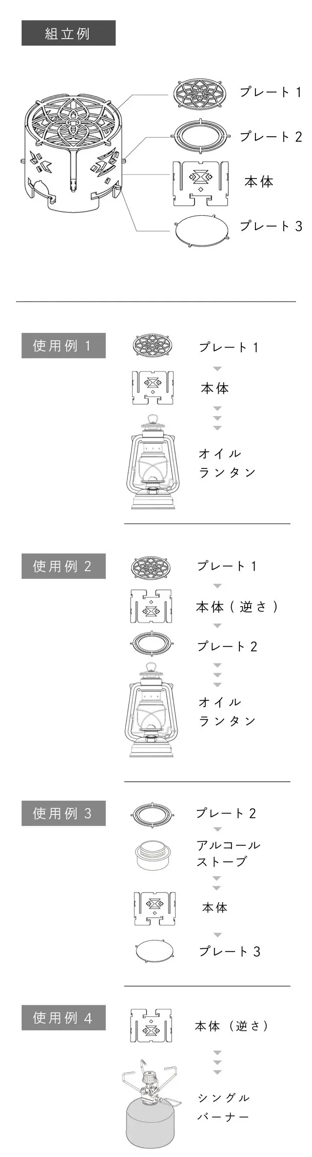 プレートは3枚全部を使用しなければならないものではありませんので、お好みや用途に合わせてご使用ください。
