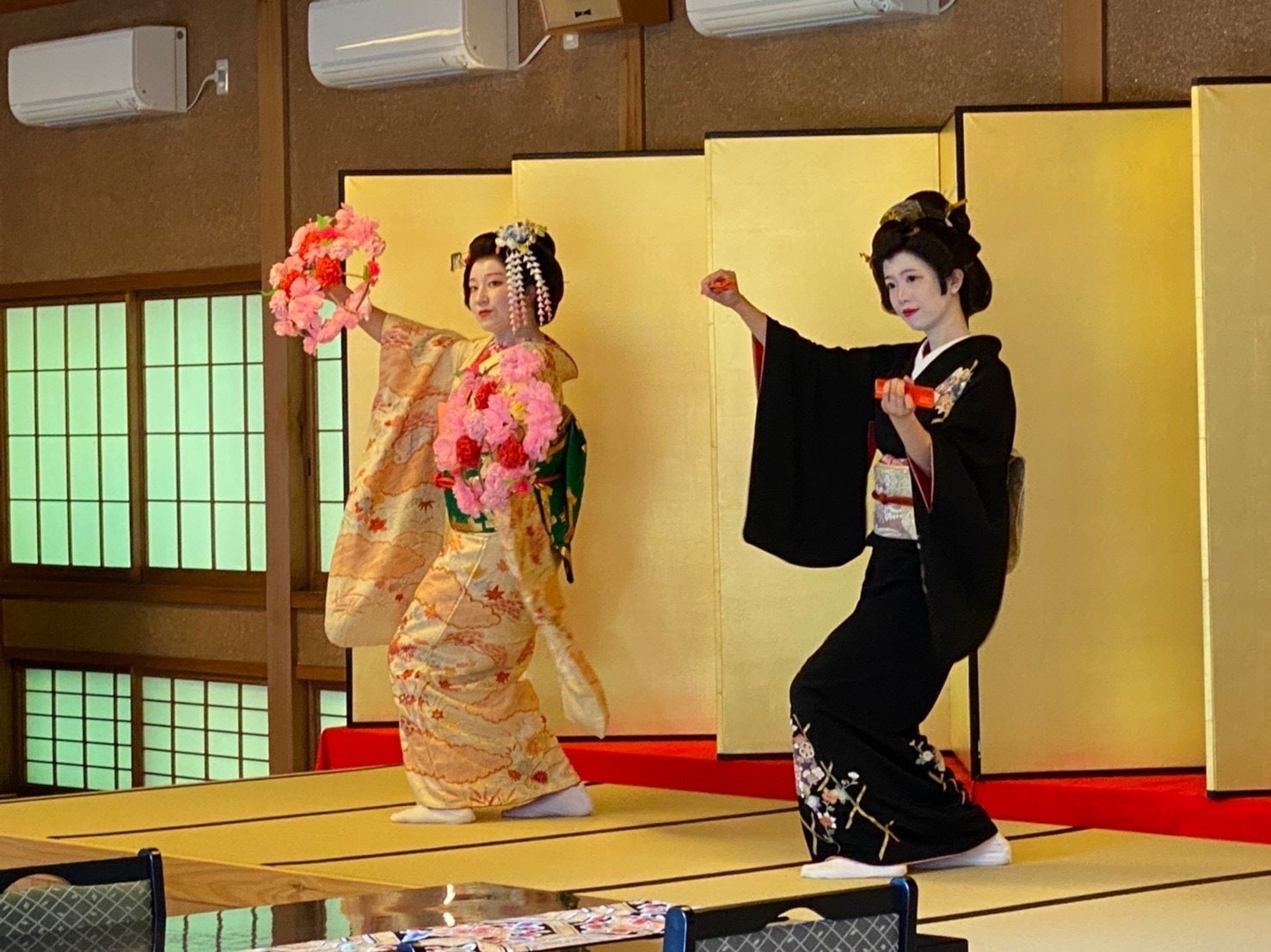 秋田川反芸妓のお座敷です。ご希望の日時を、クラウドファンディング終了後にご相談させていただきます。松下の大広間または、秋田市内の各料亭のいずれかご希望の会場に芸妓がお邪魔いたします。秋田川反芸妓とともに賑やかなお時間をお楽しみください。コースによって2名2時間の場合と、総上げ(所属する秋田川反芸妓全員)2時間の場合がございます。料亭濱乃家様にて※飲食代はお客様のご負担となります。※芸妓のお名指しをご希望の場合は、別途料金が発生します。※県外の料亭へも出向可能ですが、別途交通費や宿泊費等が発生します。※公序良俗に反する内容、法令に違反する内容などはお受けできません。