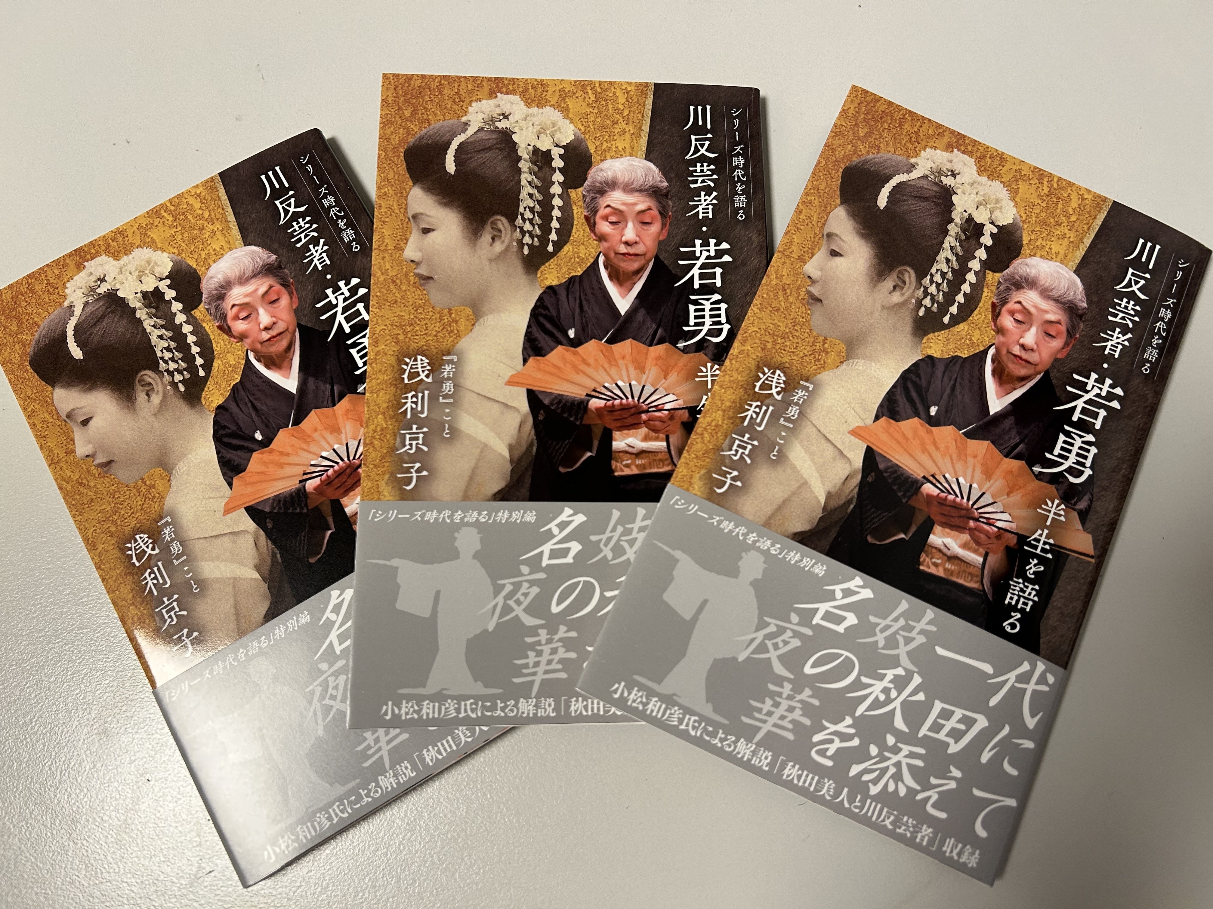 若勇お姐さんのおかげで、細い一本の糸でなんとか繋がった川反花柳界の歴史。今、妹分の秋田川反芸妓連のあきた舞妓・あきた芸者 がなすべき役割は、後世に若勇から受けとったバトンをしっかり渡すことだと思っています。若勇世代の方に、昔を懐かしみながら楽しんでいただくのはもちろんですが、本当に栄えていた頃の秋田を知らない世代への貴重な資料にもなるはずです。