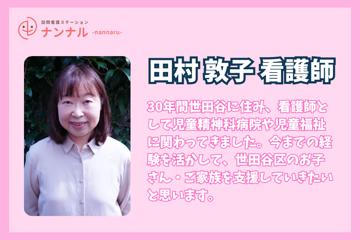 子どもと家族の支援に特化した<訪問看護ステーション ナンナル>を新しく世田谷に設立したいと考えている看護師の田村と申します。