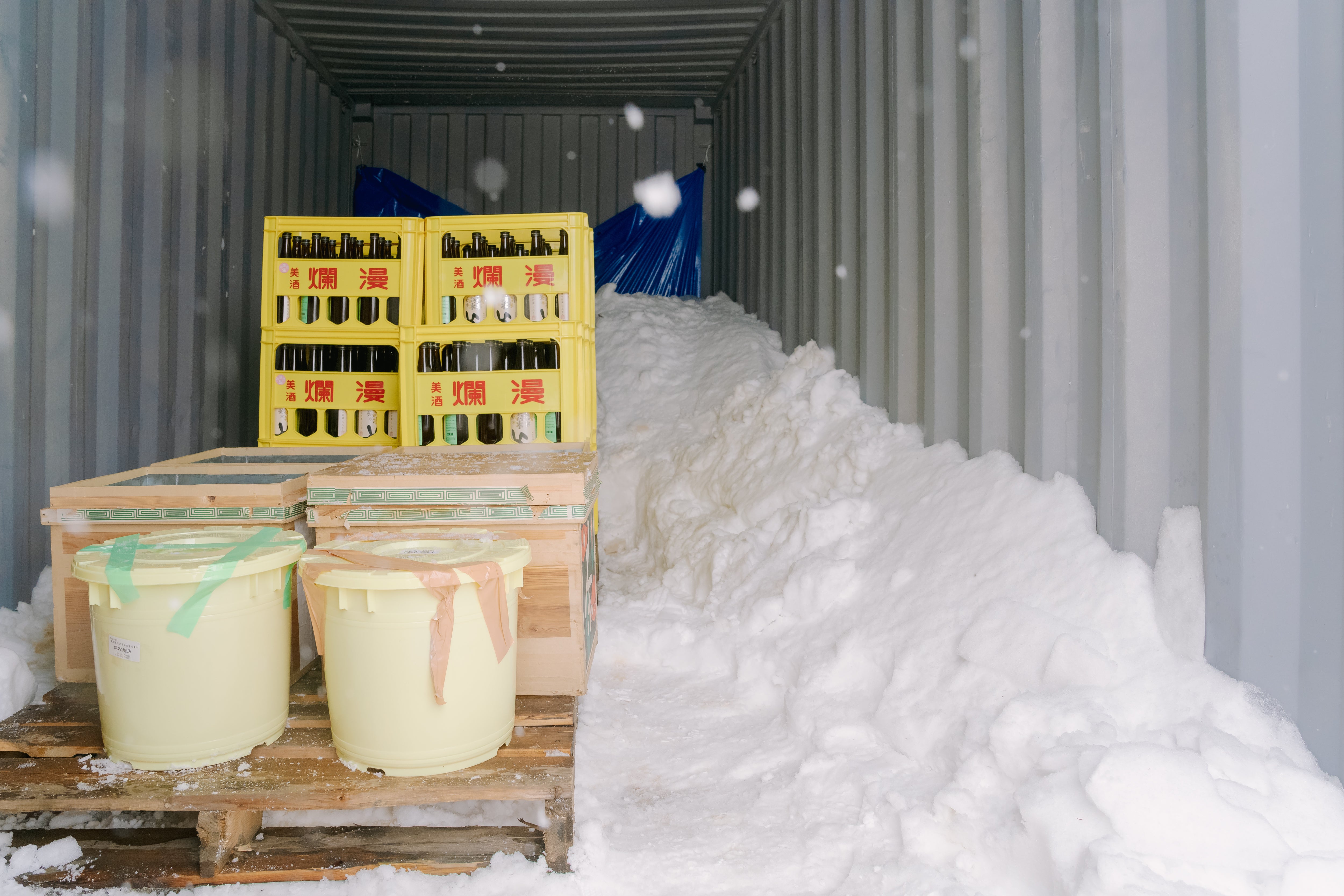 2022年には雪室に利用するコンテナを1機レンタルし、本格的に事業をスタート。コンテナで貯蔵されたりんごやビールは、弊社のECサイト「詩の国商店」でも全国に販売し好評を得ました。