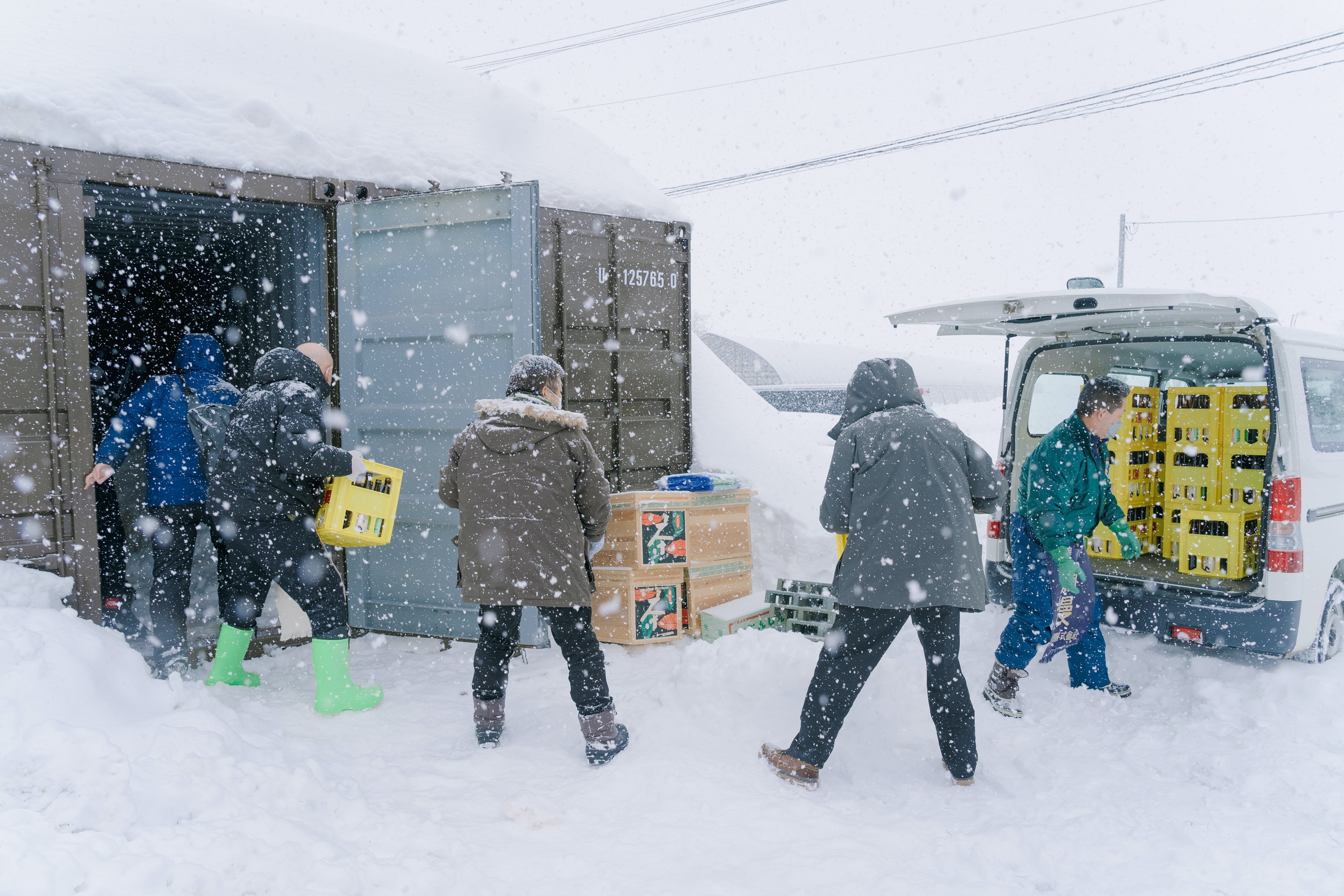 お届けするリターンは1月30日に雪中貯蔵協会の生産者が集まって貯蔵しました。(一部リターン品は、お送りする時期にあわせて蔵入れします)