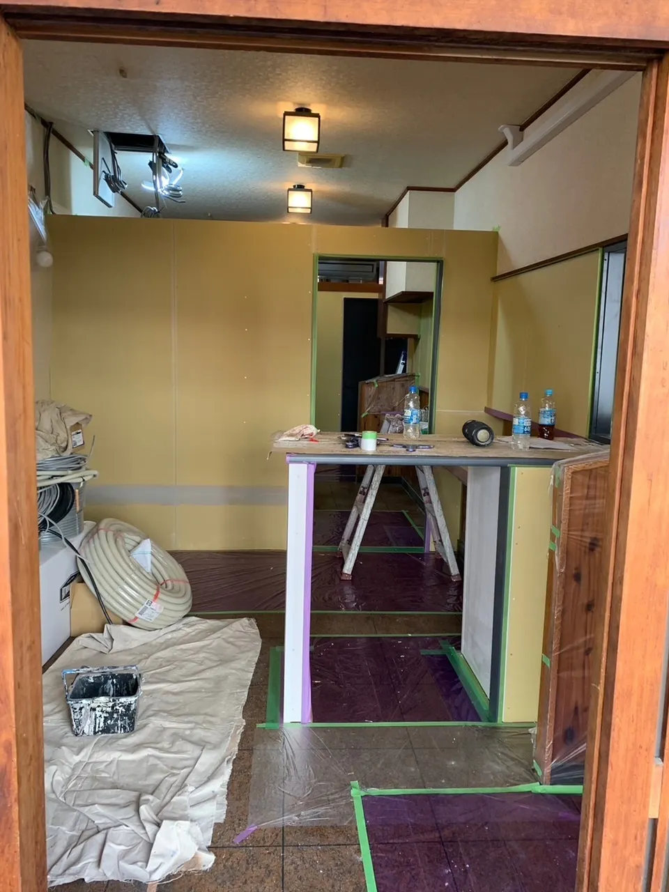 カウンターの上に壁が増設され、イートインスペースだったところにも壁が増設されました。