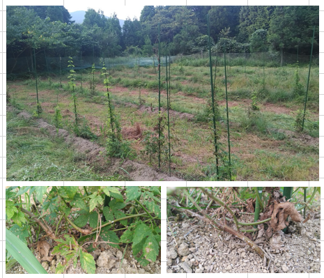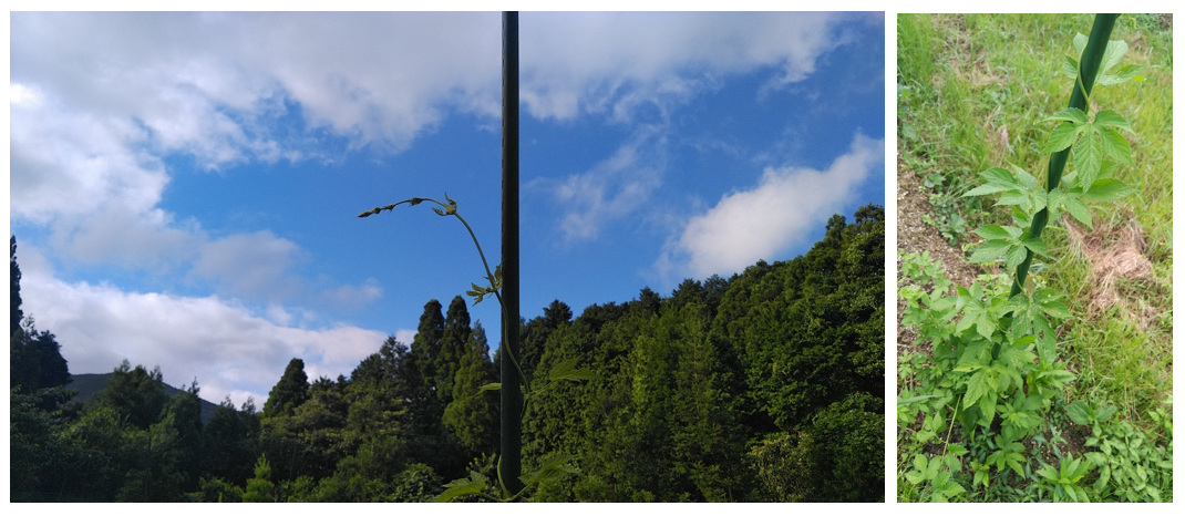 朝晩の気温もだいぶ下がってきました。日中の陽射しは強く、局所的な雨も降る中ホップたちは元気にしてます!ただ、芋虫の被害はなかなか収まらず伸び悩み…。根っこはしっかり、どっしりと成長しているので土壌には馴染んでくれていると思うのだけど。肥料のバランス?雑草のパワーが強すぎる?季節の変わるこれからの時期に、どう変化が現れるか。