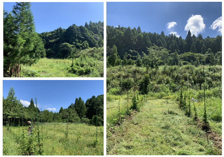 9月。少し暑さも和らぎ秋の気配も近づいてきました。今年の夏は台風の影響もあってか、まとまった雨が降る日が多くホップたちにはいい環境が整ってたのかなと思います。(なかなか実るところまで到達できませんが…。)しかし雑草たちにとっても良い環境で…よく伸びます(汗)涼しい風と快晴の中、自然の力強さを全身で感じながら草刈り作業をしています。