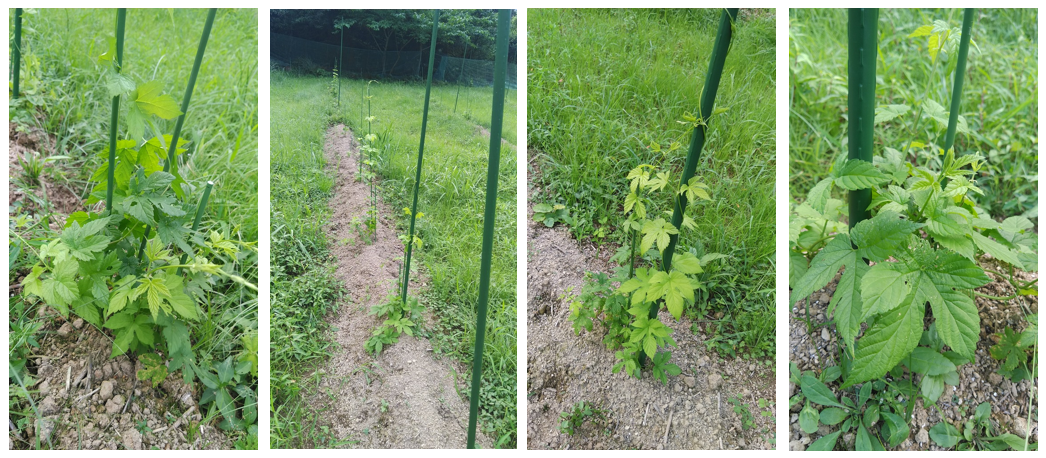 やっと落ち着いた雨…からの夏の陽射し!!と思いきや、再びしばらくの雨予報。ホップたちは元気に成長しています!雑草たちも一緒に!!畝の間の雑草たちを刈りたいのだけど、大雨やら都合が合わないやらで無法地帯になってます…。この雨が上がれば梅雨明けかな?一気に草刈り!やりますよっ!!