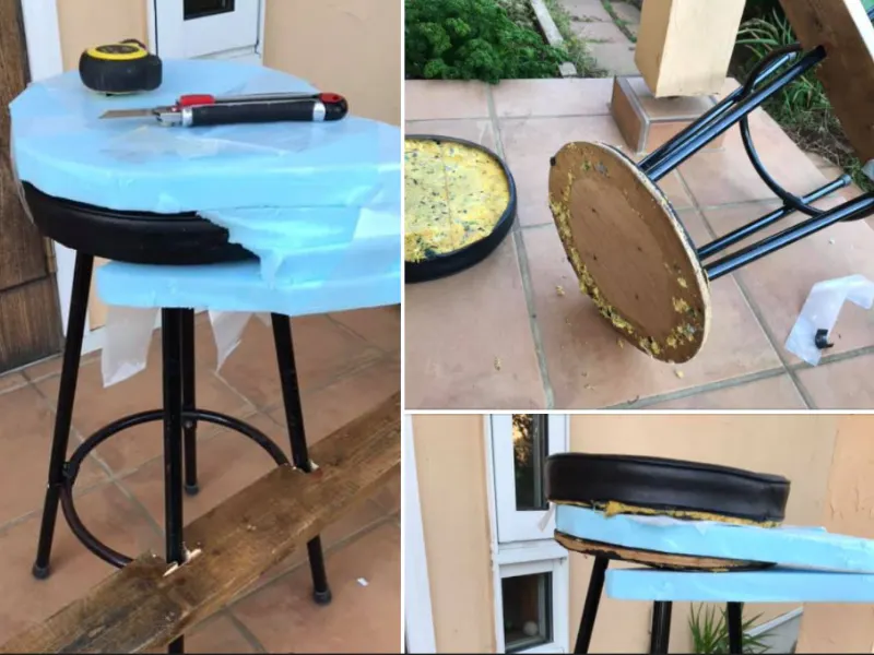 これでは商品にならない、知り合いに見せて終わりになってしまうかもしれない、、、すると、どうしたことでしょう!運転手として付いてきてくれた夫が突然、物づくりに目覚め、座面を作成してくれてすごく上手だったのです!