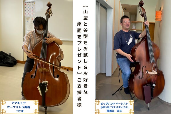 「楽器を支えるストレスからの解放!座面で支える新発想のコントラバス椅子を開発したい」プロジェクトオーナーのベーシストサポートです。