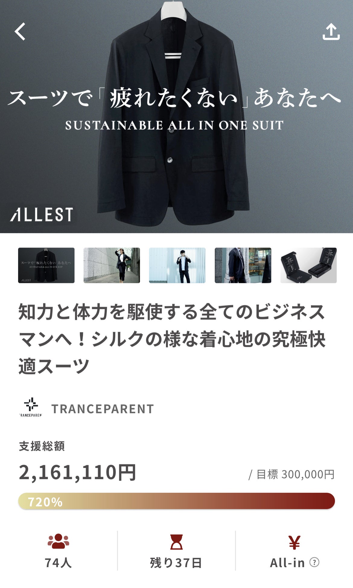 ご支援者の皆様ありがとうございます。感謝しております。ALLESTです。以下ご連絡いたします!紺色スーツリターン決定!! &早いデリバリー枠も追加!! (昨日まで購入の方も6/10頃発送します!) *現在キャンプファイヤーmachi-yaで一時的にスーツリターンが購入できない状態です。本日中??にリターン追加されます。よろしくお願いいたします!