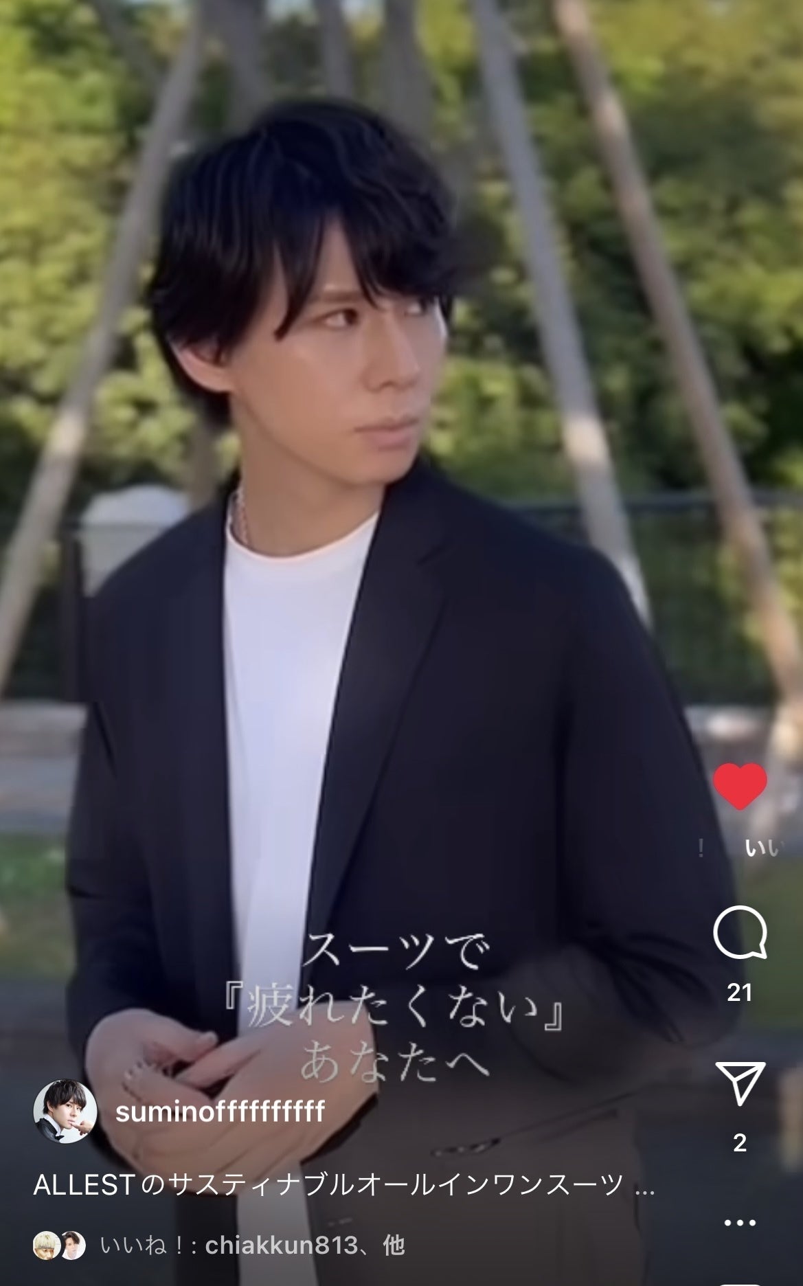 ありがとうございます。今日は今大注目の俳優でモデルのスミノフ君の着用リールを紹介します。動画で見れます。https://www.instagram.com/reel/Csvt0rNJcwi/?igshid=MzRlODBiNWFlZA==雰囲気ありますよね。ALLEST スーツが似合いそうで着てもらいたいと、私の方からお願いして着用していただきました。ALLEST を着用した動きのある動画が確認できますので、是非見てください。そして、スミノフ君ありがとう。テレビにも良く出演されていますので、皆さん注目!と応援お願いします!プロジェクトは残すところ後3日です。ALLEST を魅力的に感じた方はこの機会に是非「さらさら快適な心地良さ」を体感してください。それでは後3日になりましたが、口コミやオススメ応援何卒よろしくお願いします!