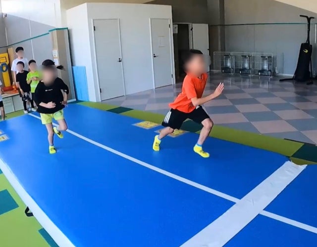 跳ねるマットでは前転や側転などのマット運動の練習も安全に行えます。