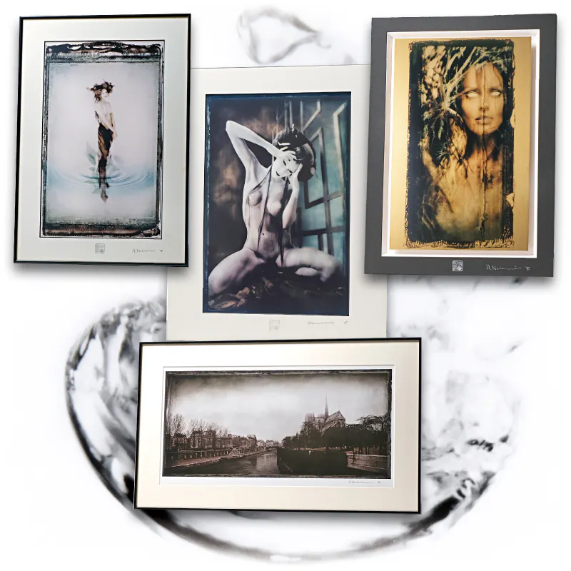 ベルギーにおける個展への出展作品で、その時点における集大成といえる作品群です。真鍮やステンレスの金属に特殊加工でプリントが行われ、厚み13mmもの特注マットで仕上げたという他にはない特製作品が10点含まれます。