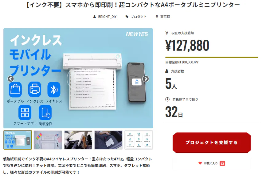 この度は「【インク不要】スマホから即印刷!超コンパクトなA4ポータブルミニプリンター」 にご支援頂き誠にありがとうございます!