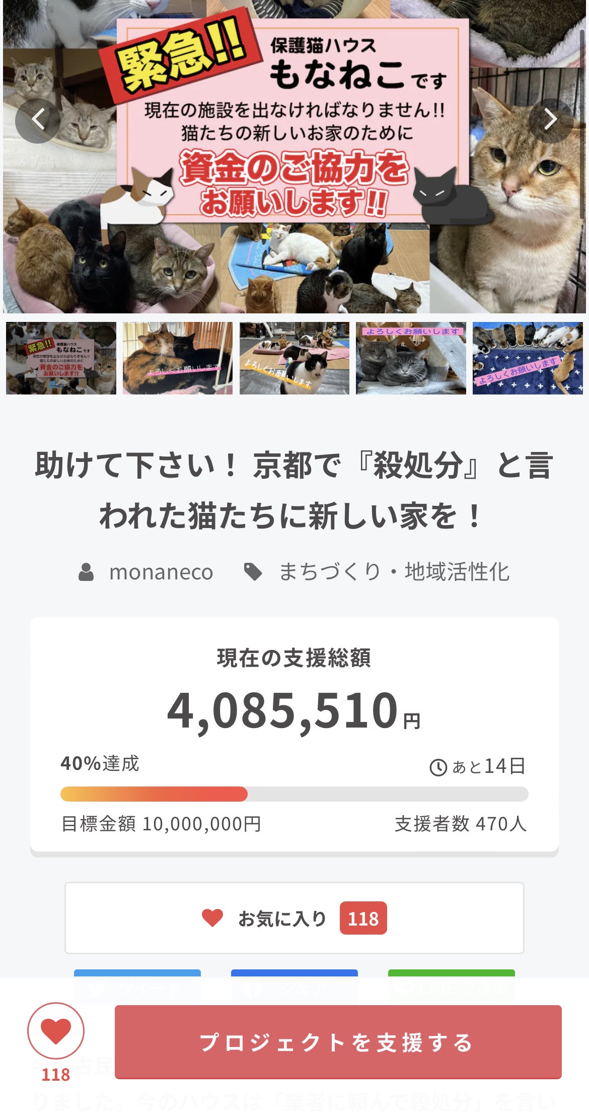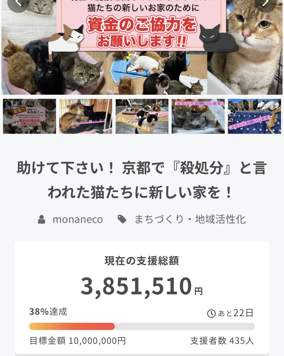 トップページに「もうすぐ終了」の文字がこの間スタートしたばかりな感覚ですがクラウドファンディング3月31日で終了を迎えます500人の方にご支援頂き、その中には2回3回とご支援して頂いている方もたくさん居てくださって本当に本当に感謝しかありません♡あと1週間できる限り毎日活動報告書きたいと思っていますので読んで頂けると嬉しいです☆昨日、Twitterの企画で当選したご飯をもなねこへプレゼントして頂きました♡代理応募も可能な企画でもなねこへ当選のごはんが届き本当に嬉しかったですありがとうございますTwitterにも載せてるのでまた見て下さい☆↑↑↑↑↑ぼくのごはーん♡な顔したパッチくんです♡☆本日の猫たち☆キジトラお母さんから産まれた三兄弟全員男の子手前からパッチ ハロ ハイジスタッフのSNSにもよく登場する子達です☆みんなやんちゃで食いしん坊な三兄弟♡掃除機の音がしてちょっとビックリ顔です(笑)↑真ん中のペルちゃん先日ごはん食べたそうにするのに食べませんでした。カメラ付きトイレでチェックして、うんちがて出てなさそうだったのでお腹をマッサージ。夜中無事に出ていつものペルちゃんに戻りました!こんな感じでもなねこではこのトレッタキャッツさんのカメラ付きトイレで健康管理をしています大人猫たちはなかなか抱っこして体重測ったりが難しいので体重や尿量を測ってくれるのは本当に有難いです☆優れものでたくさん居てもAIが顔を判別してくれるのです!血尿や結石、下痢の時もいち早く誰か判断出来て病院へ連れて行くことが出来て凄く助かってますトレッタさんのご寄付で猫たちの健康を守ってもらってます。いつもありがとうございます♡今日も読んで頂きありがとうございます☆残り1週間引き続き拡散よろしくお願い致します!
